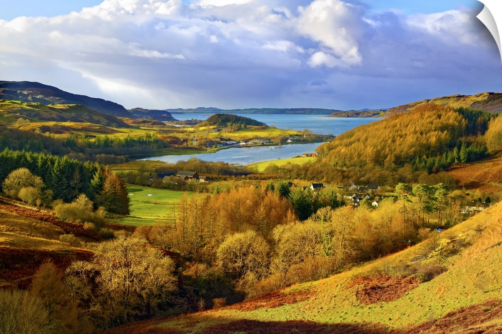 <p>A scenic autumn view of a coastal landscape in the Scottish Highlands, looking towards Loch Melfort, Highlands, Argyll and Bute, Scotland, United Kingdom, Europe</p>