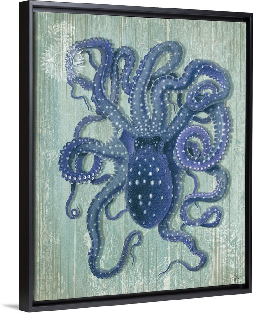 Art Blue Wall Art Decorative Art Fab Funky Graphic Art Painting Wildlife Marine Life Octopus and Squid