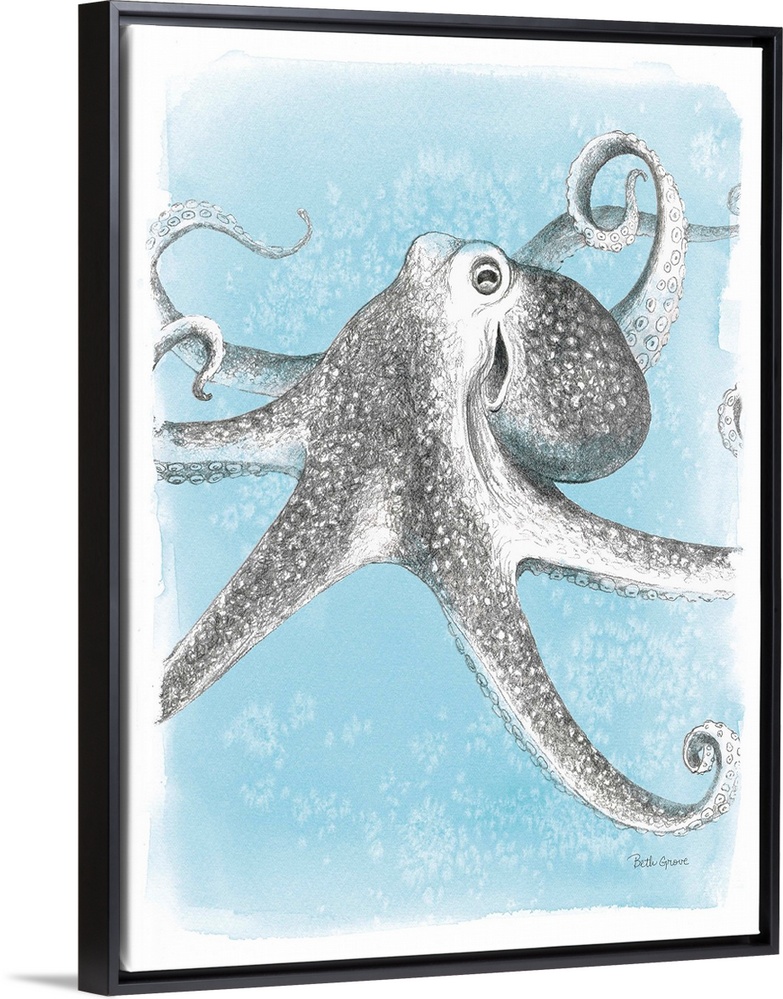 Art Coastal Decorative Art Drawing Beth Grove Marine Life Octopus and Squid