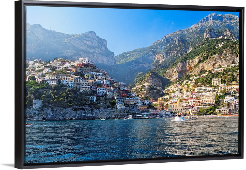 <p>Fine art photo of the Mediterranean town of Positano nestled in the hills, seen from the ocean.</p>