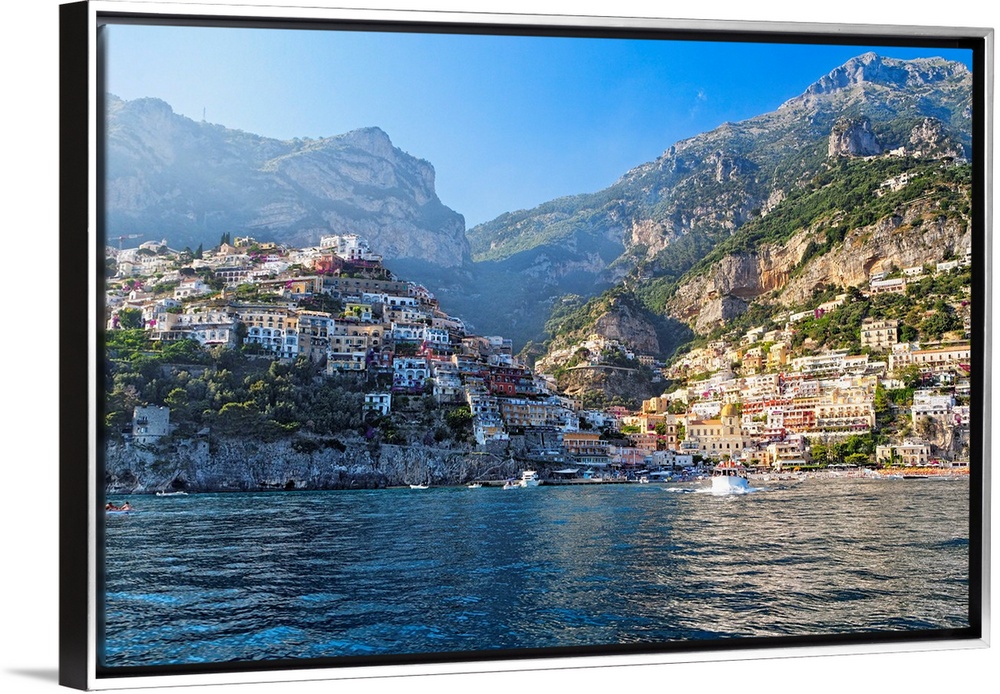 <p>Fine art photo of the Mediterranean town of Positano nestled in the hills, seen from the ocean.</p>
