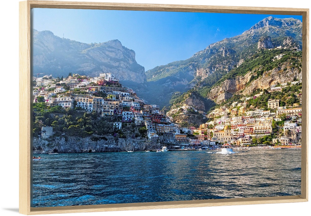 <p>Fine art photo of the Mediterranean town of Positano nestled in the hills, seen from the ocean.</p>
