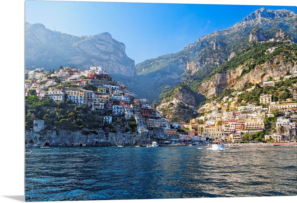<p>Fine art photo of the Mediterranean town of Positano nestled in the hills, seen from the ocean.</p>