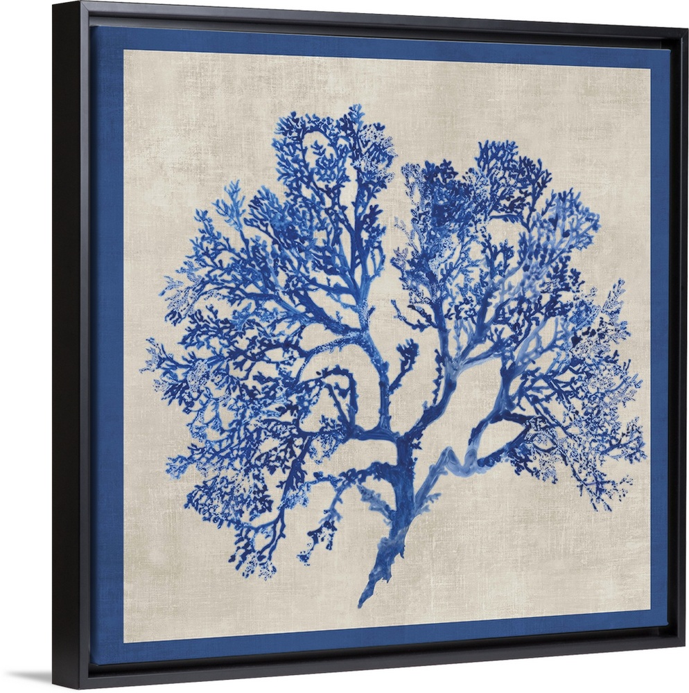 <p>Contemporary home decor artwork of cobalt blue coral against a weathered background with a blue border.</p>