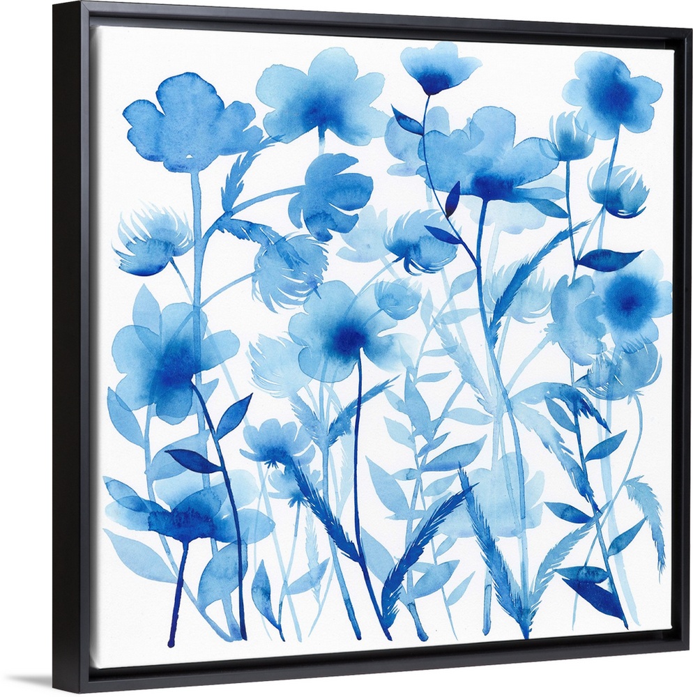 Art Transitional Blue Flowers Blue Wall Art Cobalt Blue Decorative Art Florals Painting Grace Popp Wall Art Watercolor