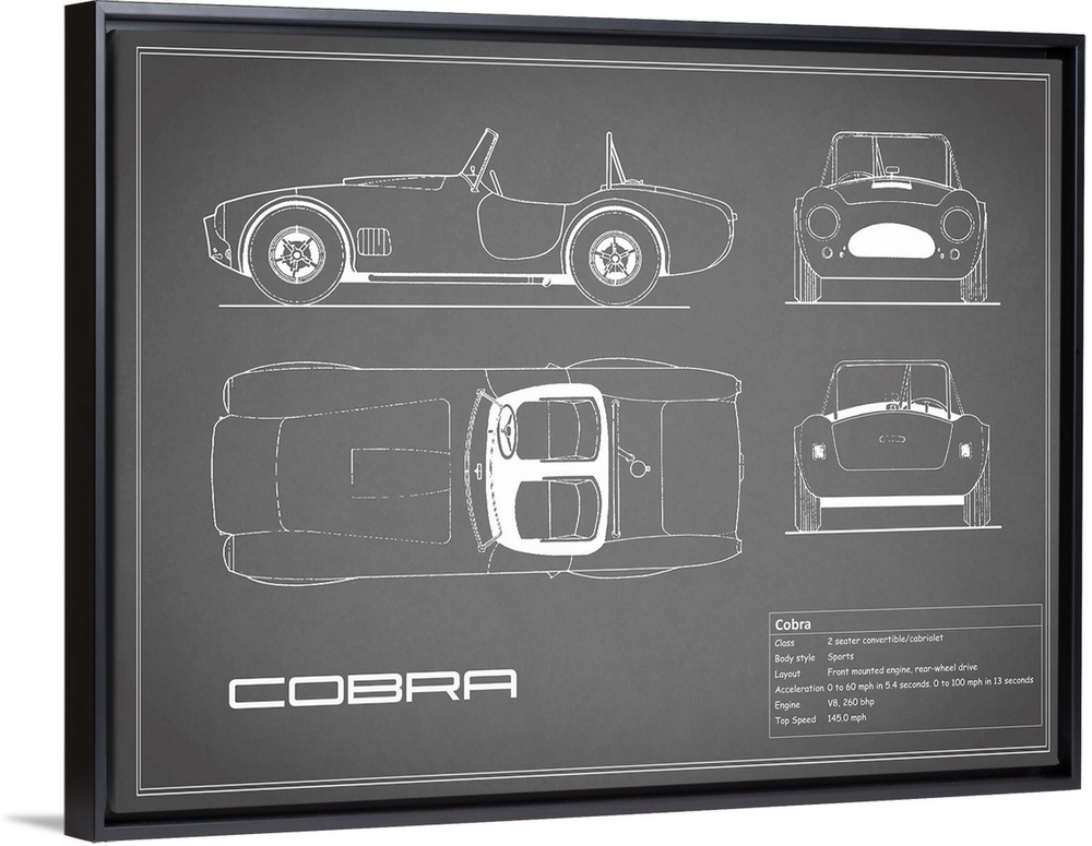 <p>Antique style blueprint diagram of a Cobra printed on a Grey background.</p>