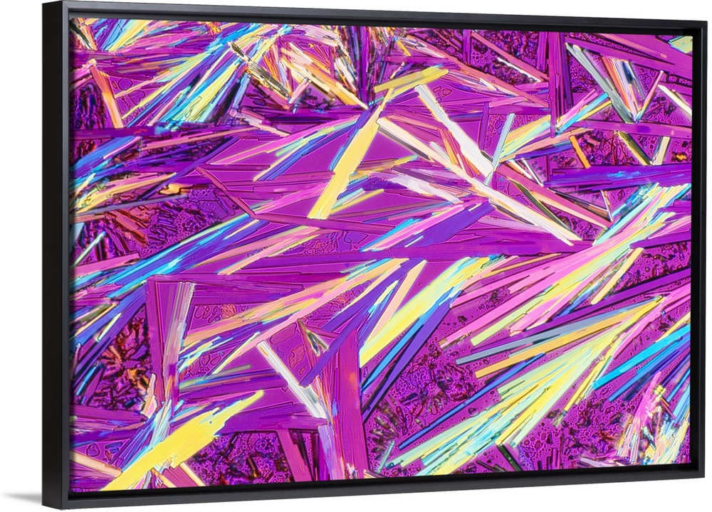 <p>Cocaine drug crystals. Polarised light micrograph of crystals of pure synthetic cocaine. Cocaine, also called benzoylmethyl ecgonine, is an alkaloid drug obtained from the leaves of the coca plant (Erythroxylon coca). It is mainly used as a recreational drug, where it is smoked, injected or snorted. It produces feelings of exhilaration and energy due to its stimulating action on the central nervous system. Prolonged use of cocaine can lead to anxiety, paranoia and dependency. Overdosing can result in irregular heartbeat and death.</p>