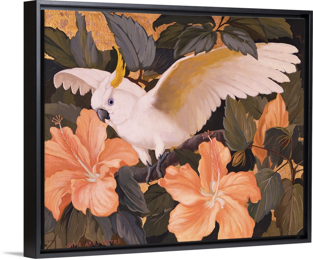 Art Traditional Jesse Arms Botke Classic Art Plants and Flowers Wildlife Florals Hibiscus Painting Wildlife Bird Parrot
