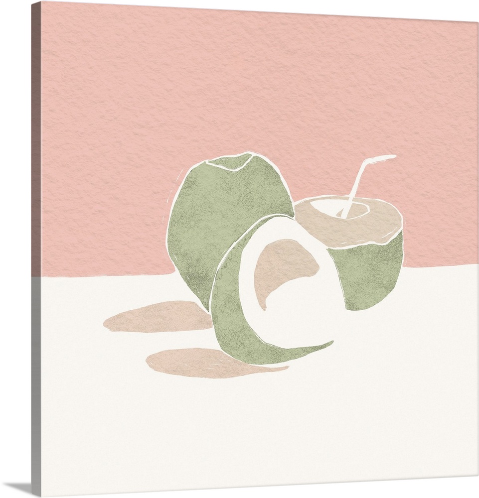 Art Decorative Art Florals Food and Drink Food Coconut Tropical Fruit Painting Pink Wall Art Yuyu Pont
