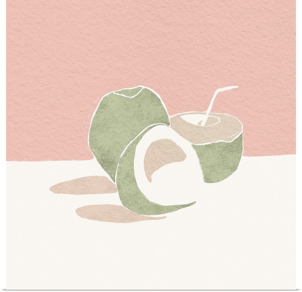 Art Decorative Art Florals Food and Drink Food Coconut Tropical Fruit Painting Pink Wall Art Yuyu Pont