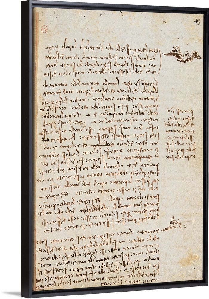 <p>Page from the Codex regarding the Flight of Birds, by Leonardo da Vinci, 16th Century, 1505 -1506 about, paper manuscript, cm 213 x 153 - Italy, Piemonte, Turin, Royal Library, Varia 95, f. 13r. (557100) Everett Collection\Mondadori Portfolio</p>