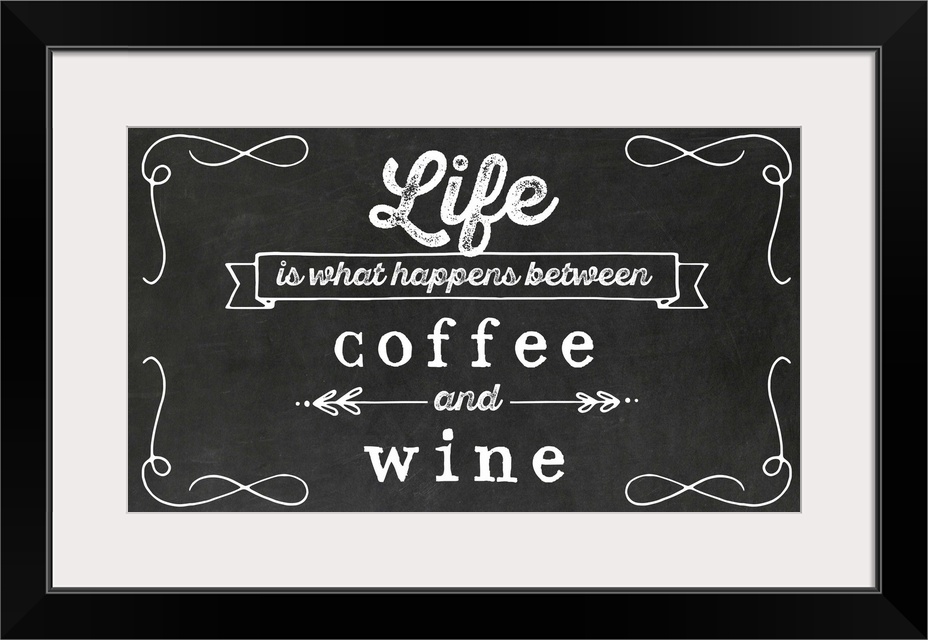<p>'Life Is What Happens Between Coffee and Wine' in black and white.</p>