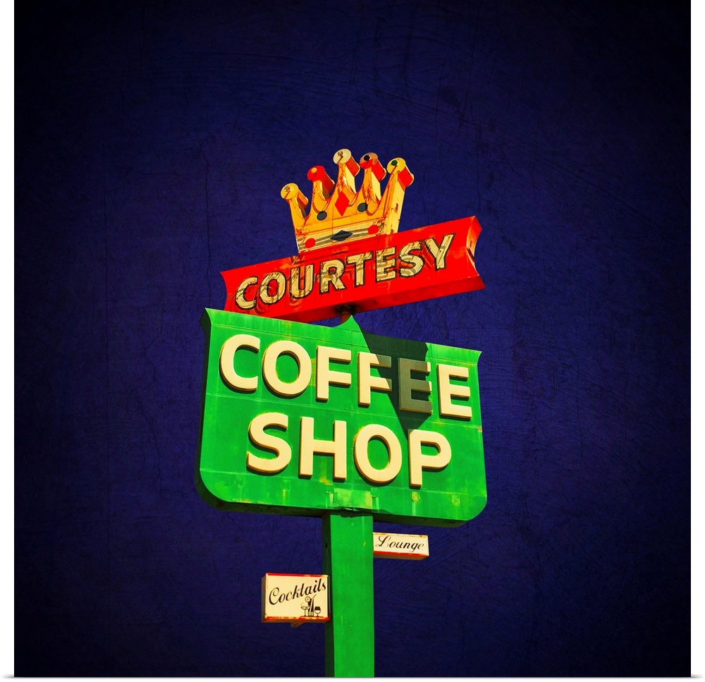 <p>Glowing 1950's street sign for coffee shop.</p>