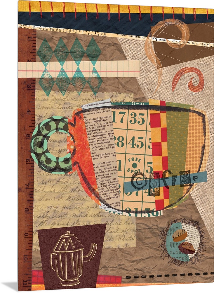 <p>Colorful coffee collage image great for kitchen accent</p>