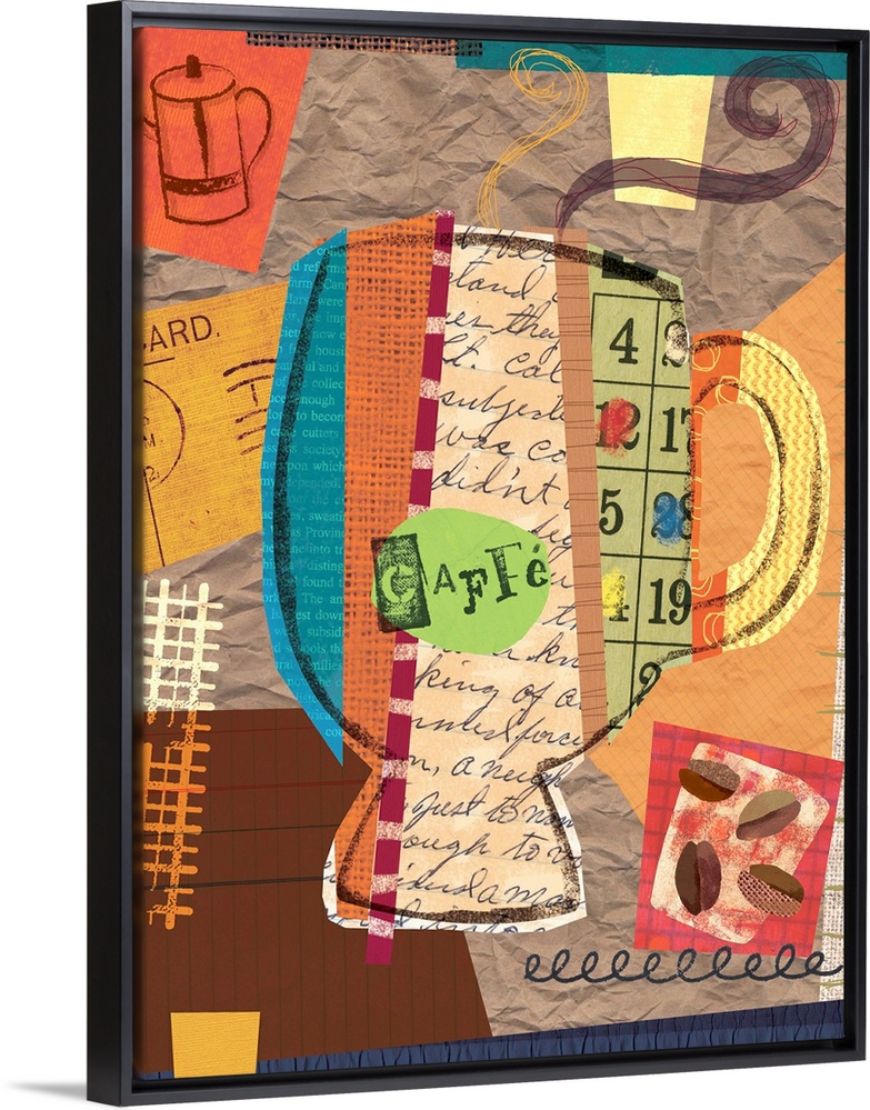 <p>Colorful coffee collage image great for kitchen accent</p>