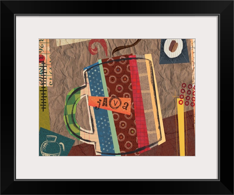 <p>Colorful coffee collage image great for kitchen accent</p>