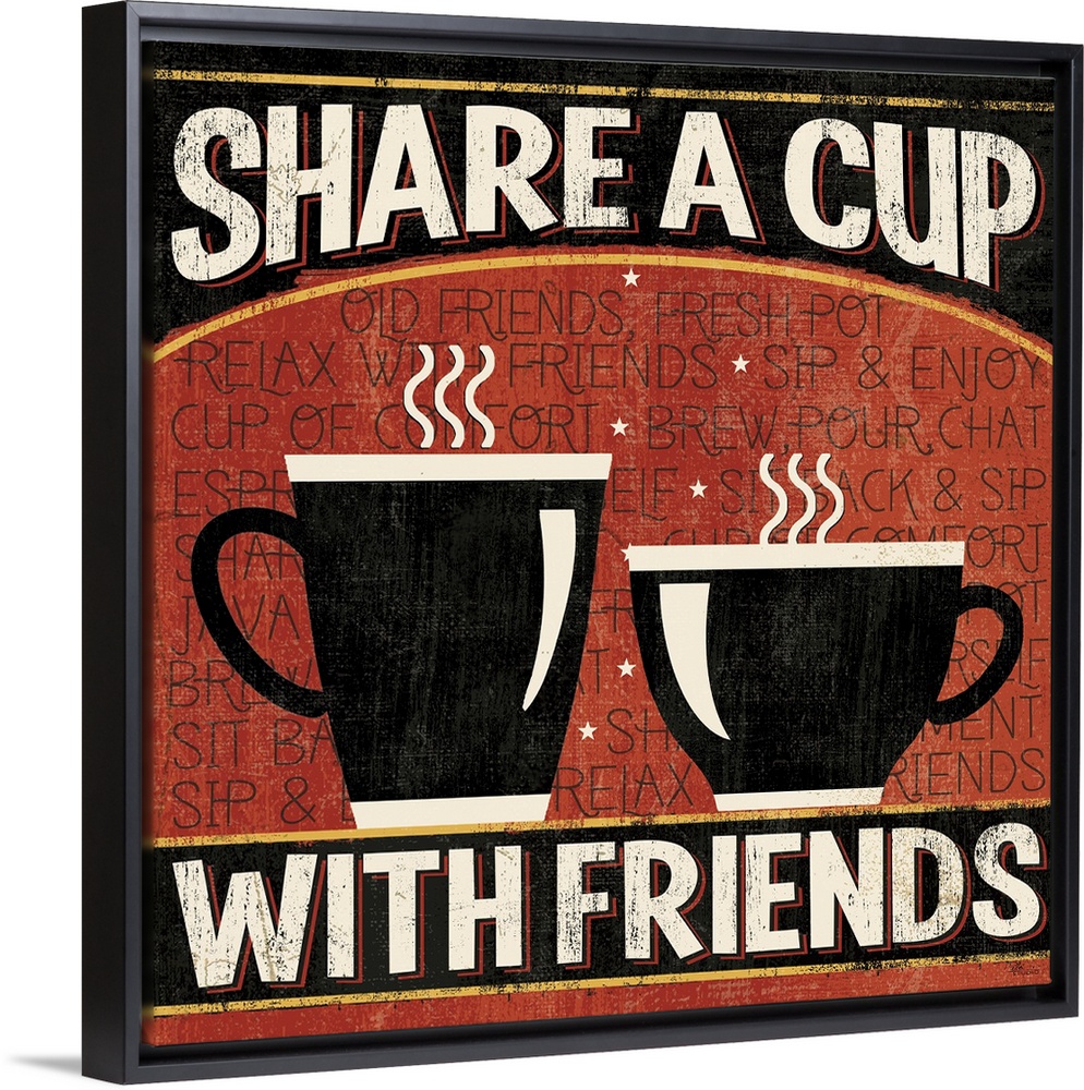<p>Digital art piece of two cups of steaming hot coffee and text that refers to friends talking over a cup of java.</p>