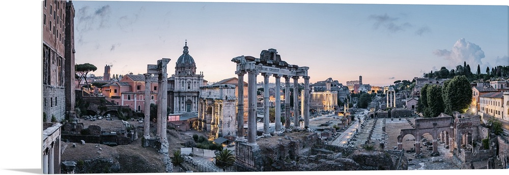<p>Coliseum, temples and old ruins seen from the Roman Forum, Rome, Lazio, Italy.</p>