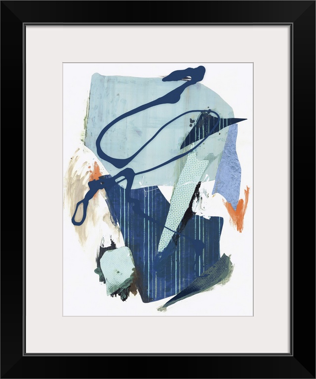 <p>Contemporary abstract artwork made of paint and blue striped collage elements.</p>