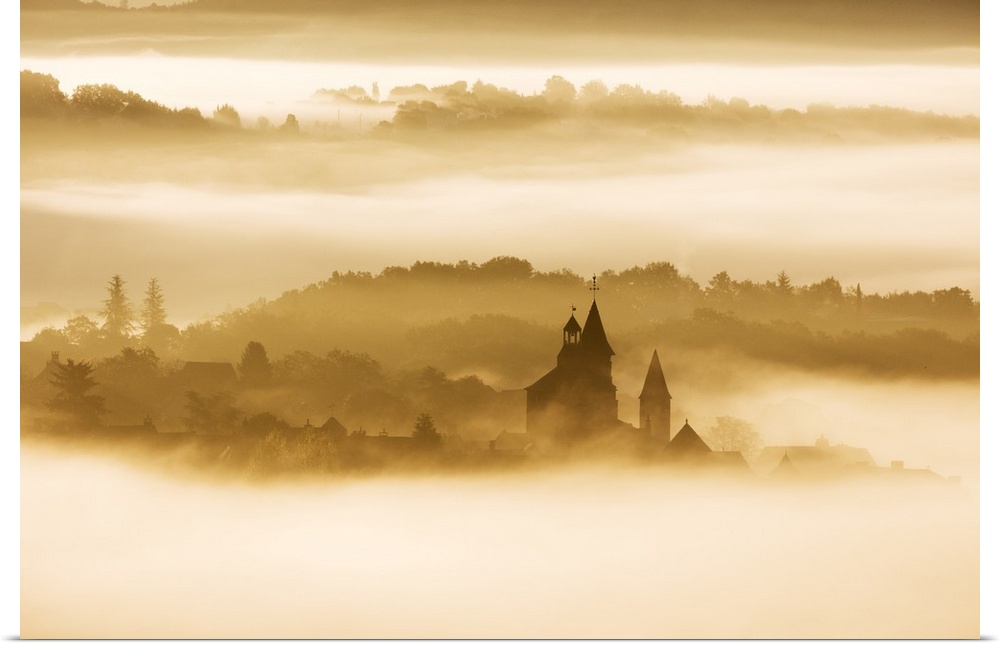 <p>Collonges-la-Rouge in the mist, Correze, Nouvelle-Aquitaine, France.</p>