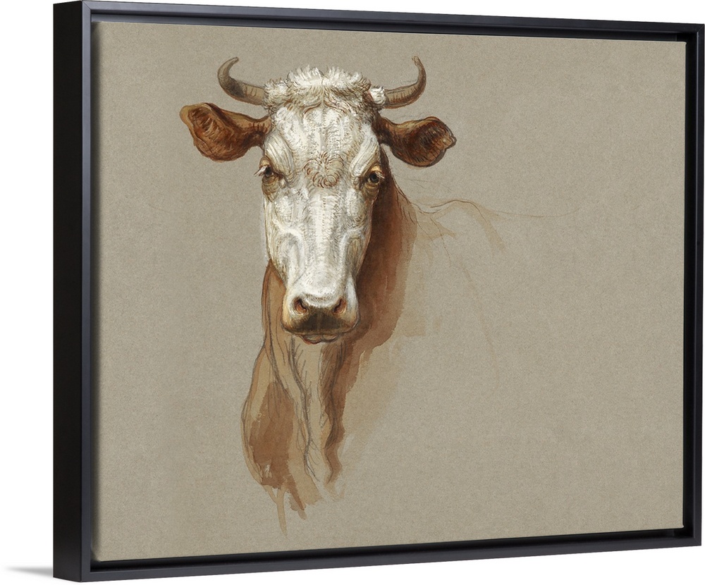 Art Farmhouse Classic Art Wildlife Samuel Colman Drawing Grey Wall Art Illustrations Moody Vintage Wildlife Cow
