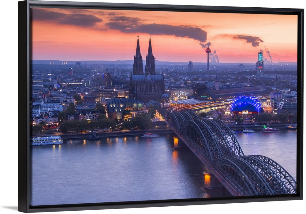 <p>Cologne Cathedral and Hohenzoller Bridge over River Rhine in Cologne city at dusk. Cologne city (Koln), North Rhine Westphalia, Germany, Europe.</p>