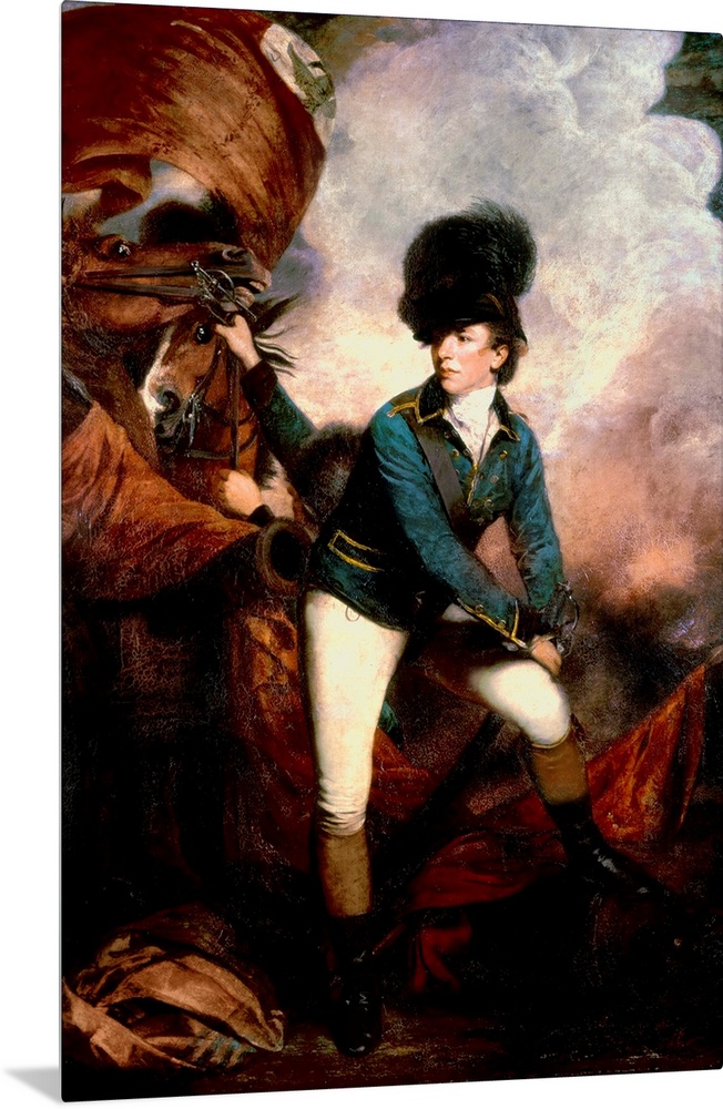 <p>XCF30346 Colonel Banastre Tarleton (1754-1833) 1782 (oil on canvas) by Reynolds, Sir Joshua (1723-92); 236.2x145.4 cm; National Gallery, London, UK; (add. info.: uniform of the British Legion or Tarleton's Green Horse); English, out of copyright</p>