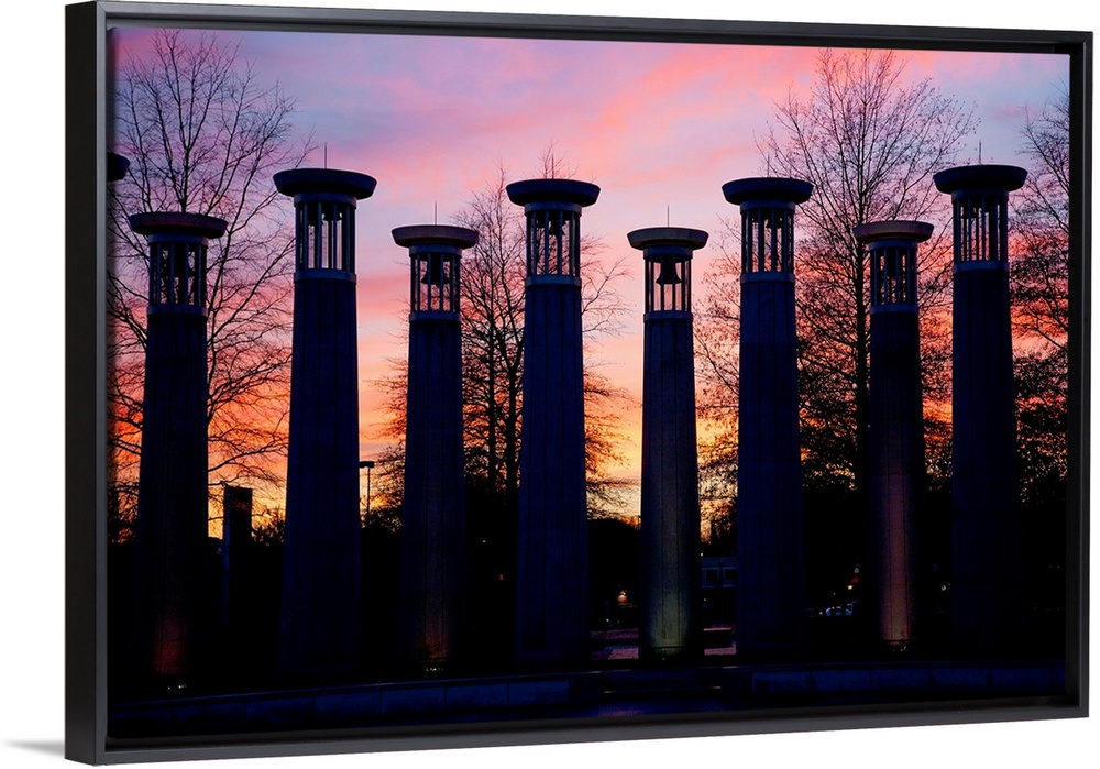 <p>Colonnade in a park at sunset, 95 Bell Carillons, Bicentennial Mall State Park, Nashville, Davidson County, Tennessee</p>