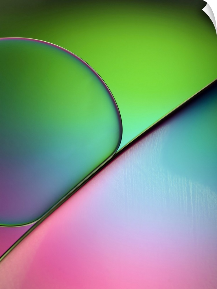 <p>Macro photograph of drops of oil in water with colorful gel filters.</p>