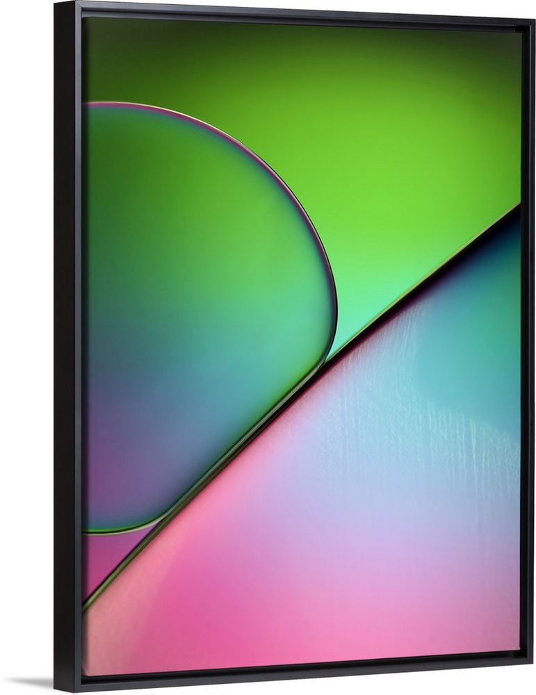 <p>Macro photograph of drops of oil in water with colorful gel filters.</p>