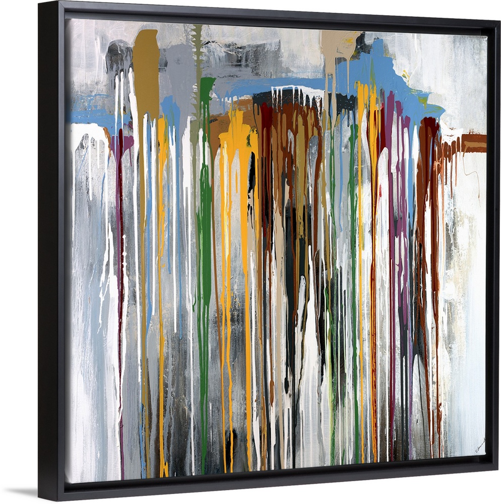 <p>Contemporary abstract painting of dripping paint. The paint trails are all different colors.</p>