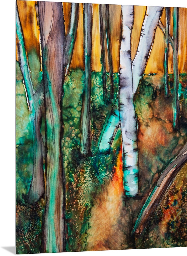 <p>Watercolor painting of a colorful forest</p>