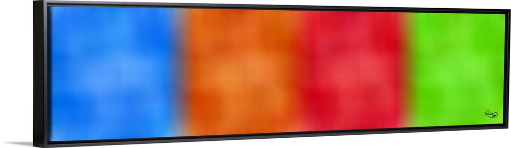 <p>A long horizontal design of blurred squared colors that faded into each other.</p>