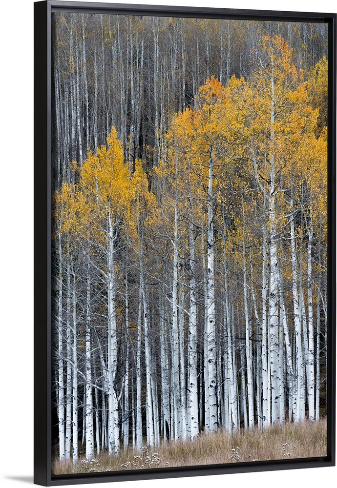 <p>North America, USA, Colorado. A stand of autumn yellow aspen in the Uncompahgre National Forest, CO</p>