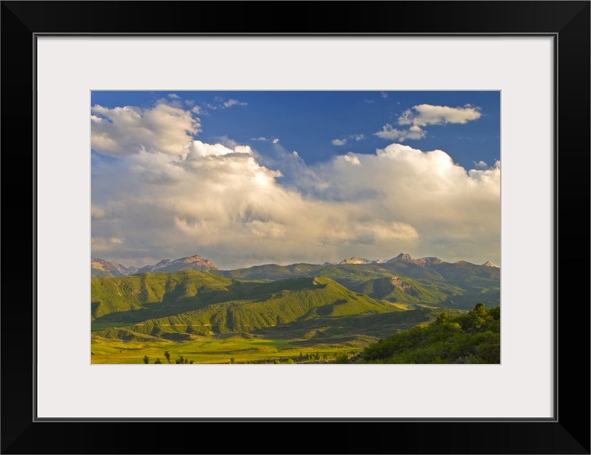 <p>USA, Colorado, Aspen, Old Snowmass Valley. Summer sunset on green mountain vista.</p>