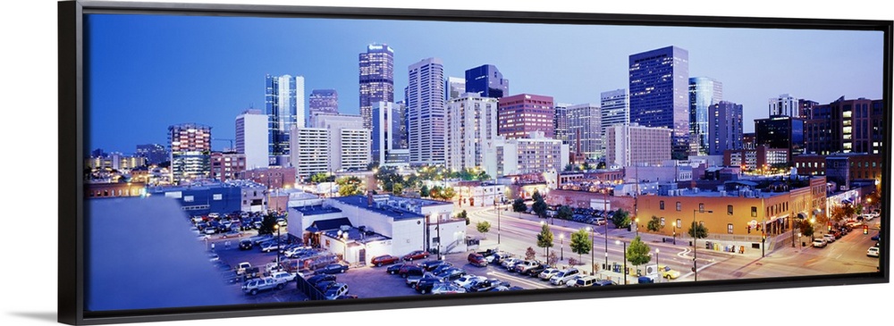 <p>Panoramic view of a vibrant downtown Denver on canvas.</p>