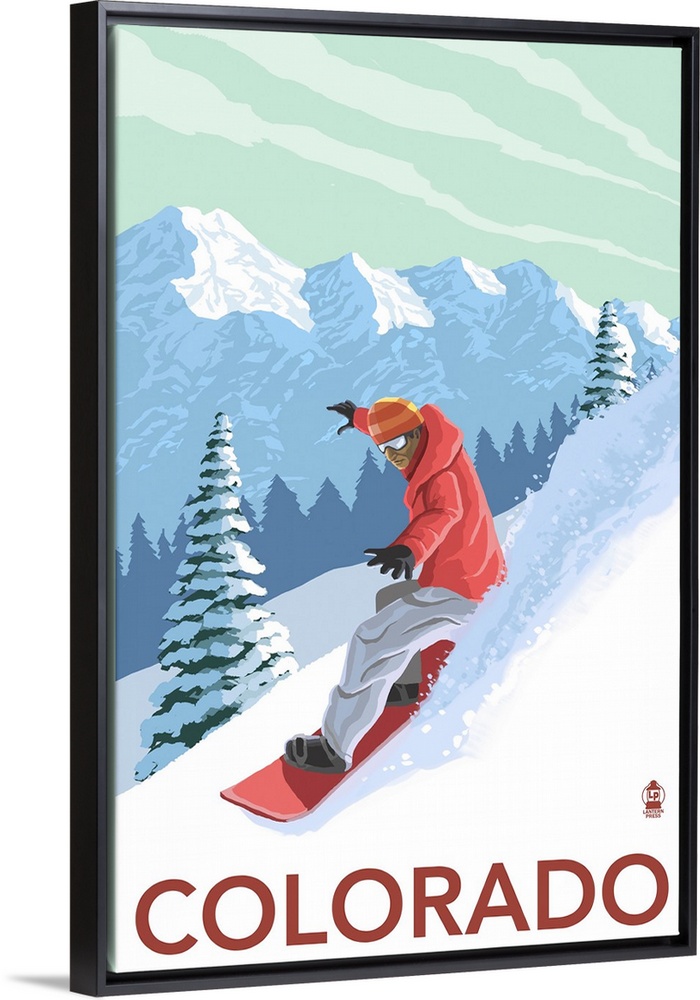 Art Mountains Lantern Press United States Colorado Sports Snowboarding Travel Posters Retro Travel Posters