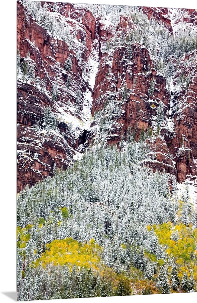 <p>North America,USA, Colorado,First Snow over the Red Cliffs and Aspens of Redstone Colorado</p>