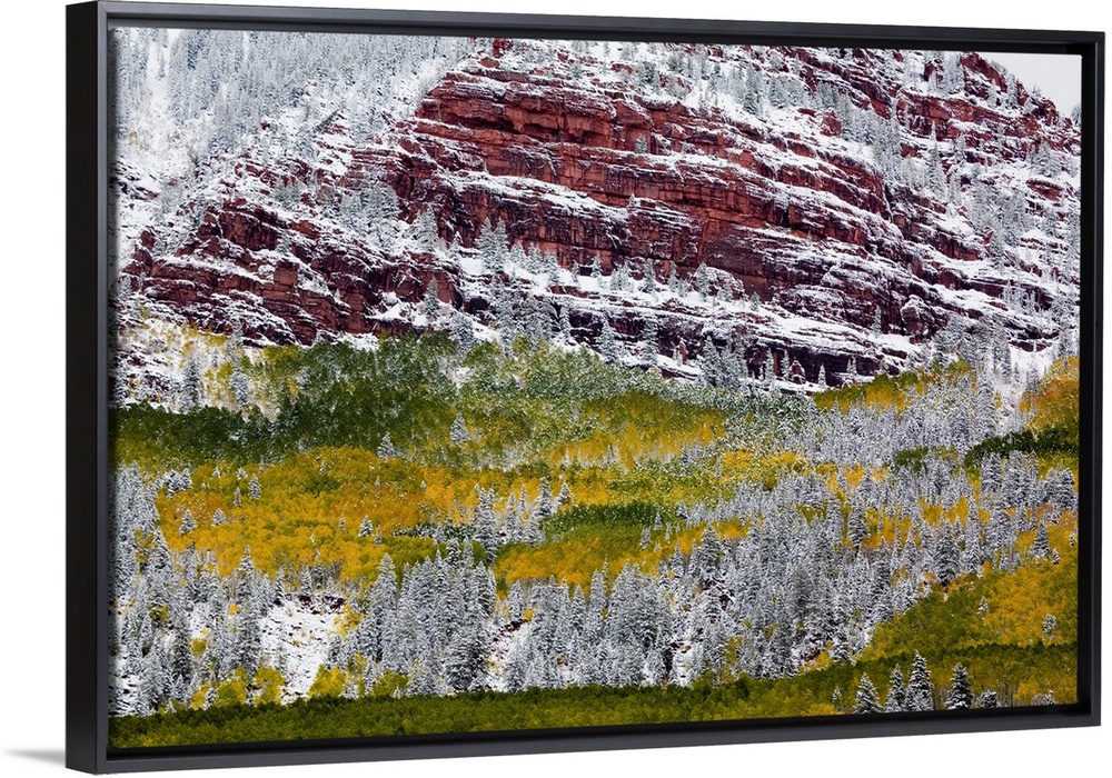 <p>North America,USA, Colorado,First Snow over the Red Cliffs and Aspens of Redstone Colorado</p>