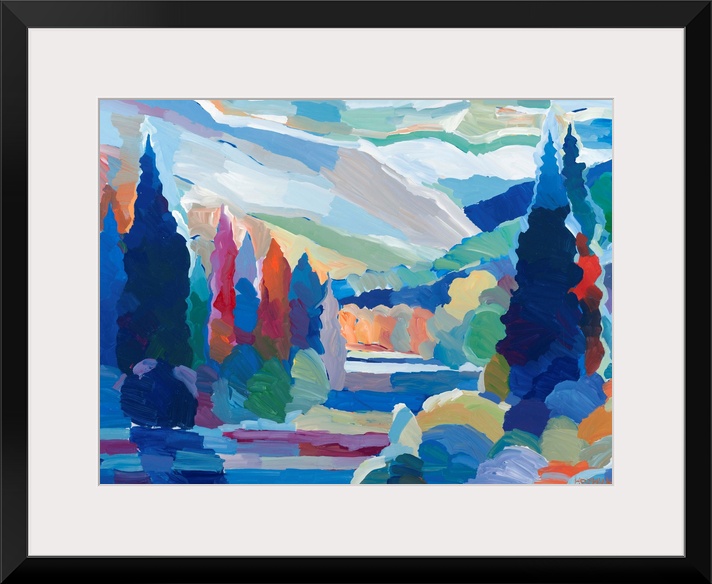 Art Blue Wall Art Contemporary Art Landscapes Hooshang Khorasani Landscapes Mountains River, Creek and Stream Trees Painting United States Colorado