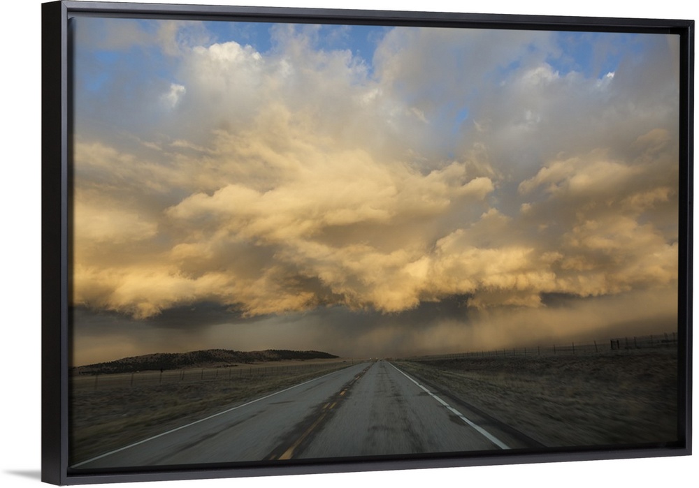 <p>USA, Colorado. Spring storm clouds at sunrise above South Park.</p>