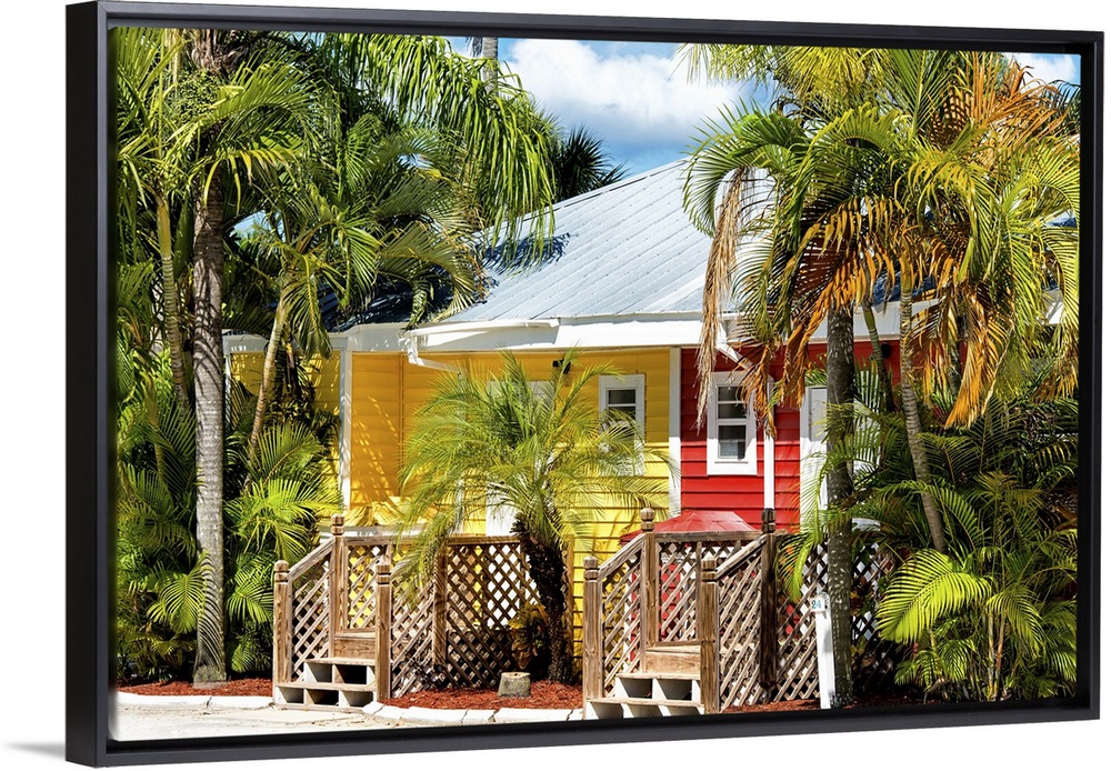 <p>A brightly painted red and yellow house in a Key West neighborhood, Florida.</p>