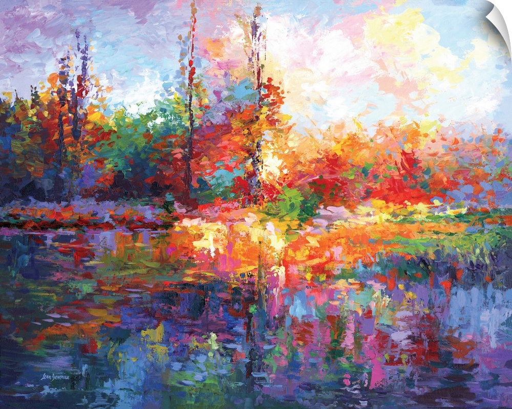 Abstract Abstract Landscapes Art Contemporary and Modern Contemporary Art Leon Devenice Landscapes Trees Forest Multicolor Wall Art Painting