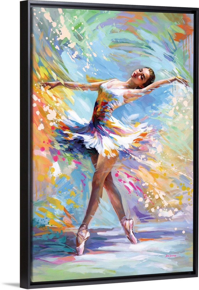 <p>Ballerina in mid-twirl, vividly portrayed with explosive, colorful brush strokes that convey dynamic movement and emotion.</p>