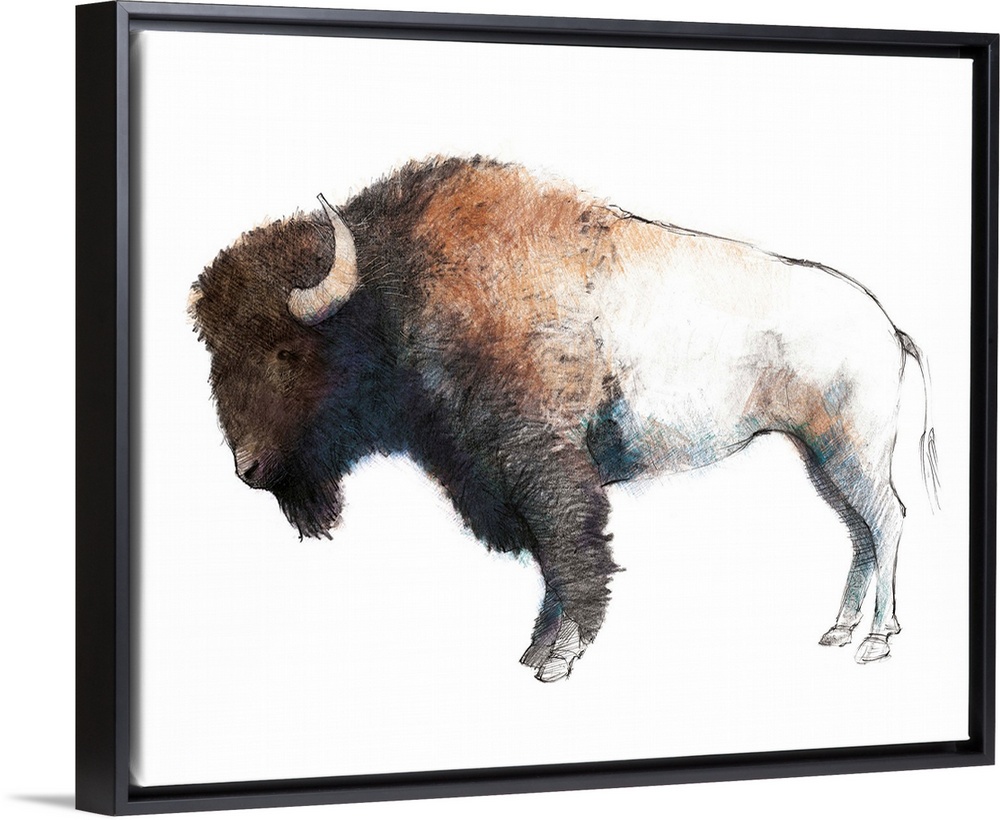 <p>Colorful sketch of a bison with shades of blue and purple on its underbody.</p>