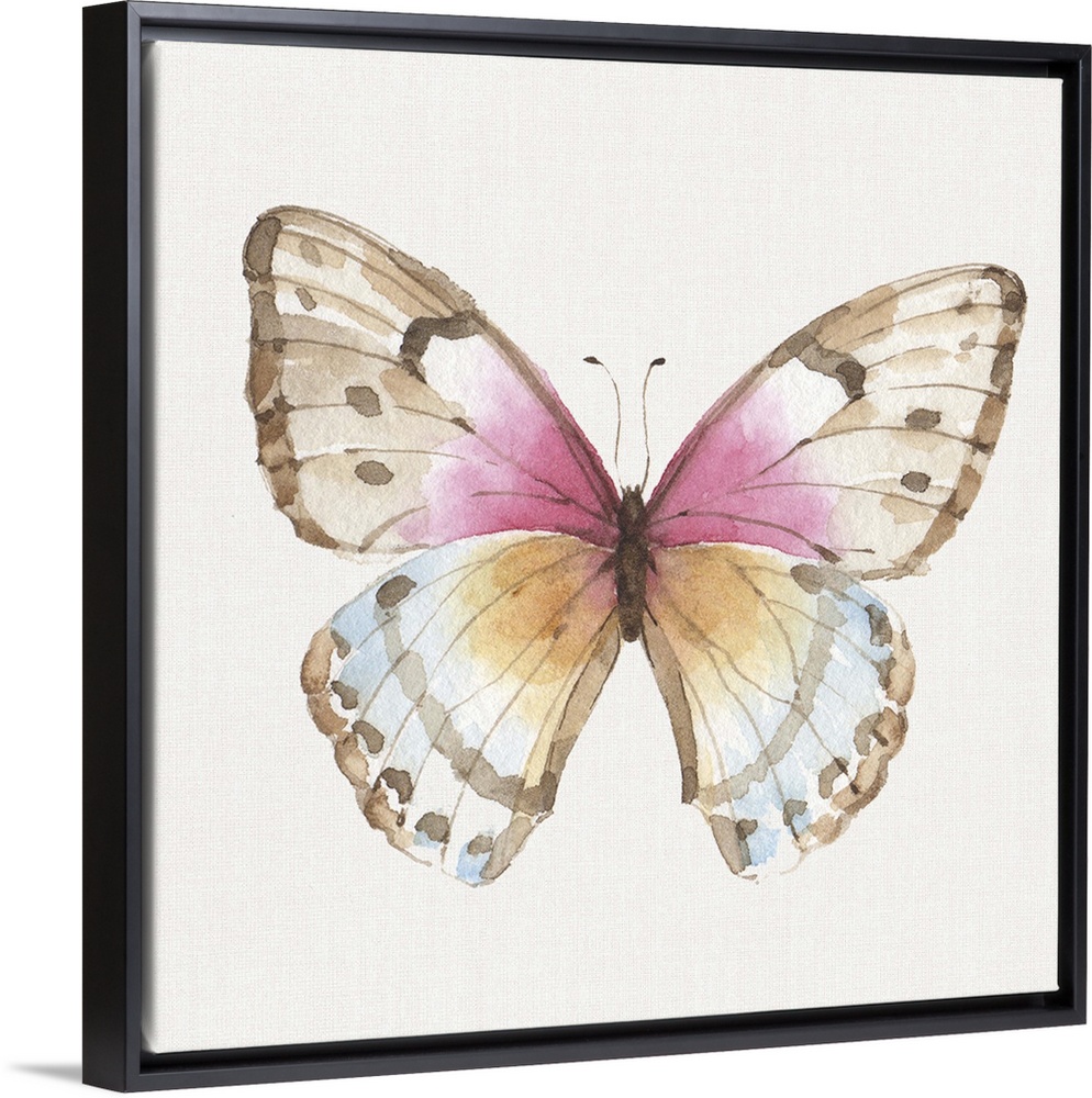 <p>Contemporary artwork of a butterfly with pink, blue and orange in the wings.</p>