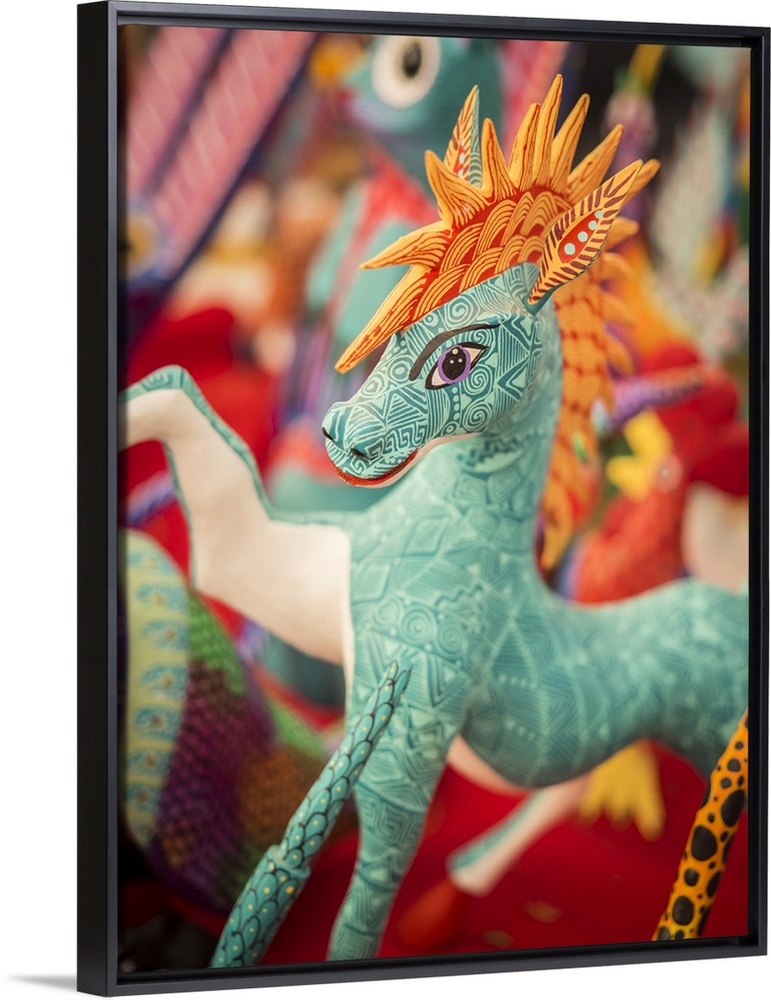 <p>Colorful carved wooden figure (alebrije) of a horse, Oaxaca valley, Oaxaca, Mexico, North America</p>