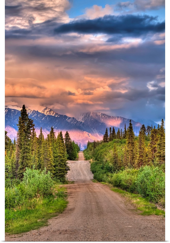 <p>Colorful clouds at sunset over the Wrangell Mountains and Nabesna Road in Wrangell-St. Elias National Park and Preserve, Southcentral Alaska, Summer, HDR</p>