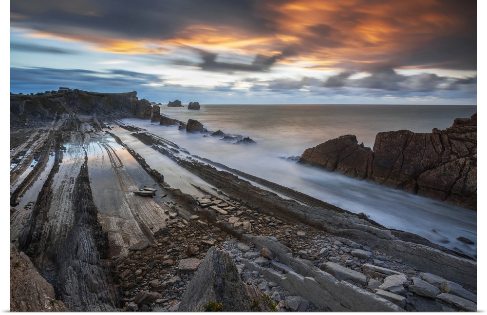 <p>Colorful clouds during sunset at Playa de la Arnia, Boo de Pielagos, Cantabria, Spain.</p>