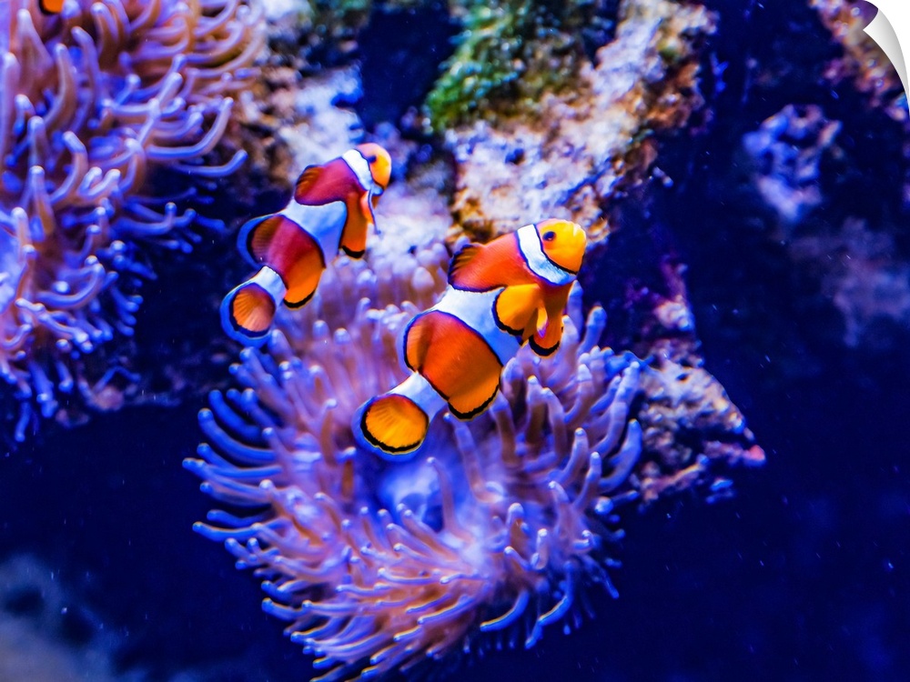 <p>Colorful clownfish anemonefish swimming, Waikiki, Oahu, Hawaii. Found in coral and reefs in tropical waters.</p>
